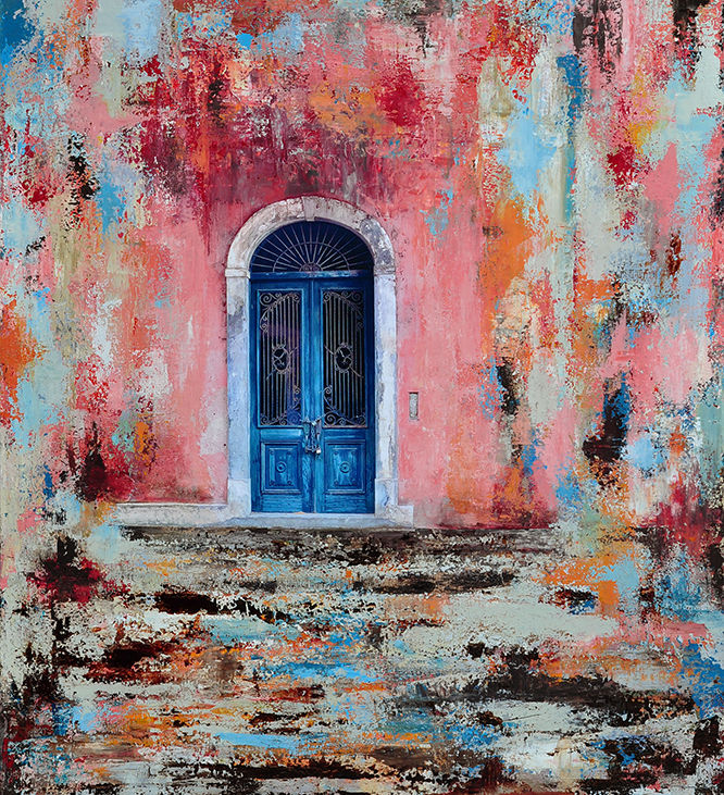 The walls surrounding the doors I photograph often show a beautiful patina that gives me an enormous amount of inspiration to use colour and layering. Working with these layers of paint recreating these old walls makes me feel like I am touching the walls again. What is behind the door is always a mystery waiting to be discovered. I want to motivate the viewer to try something new and explore what is behind the door. Doors are meaningful to many people; I invite them to be curious and to see the possibilities.
